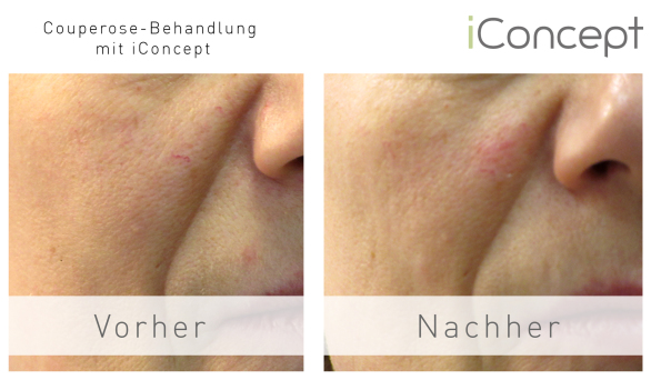 Hierzu zählen Couperose und Rosacea im Gesicht- Halsbereich und Besenreiser an den Beinen.